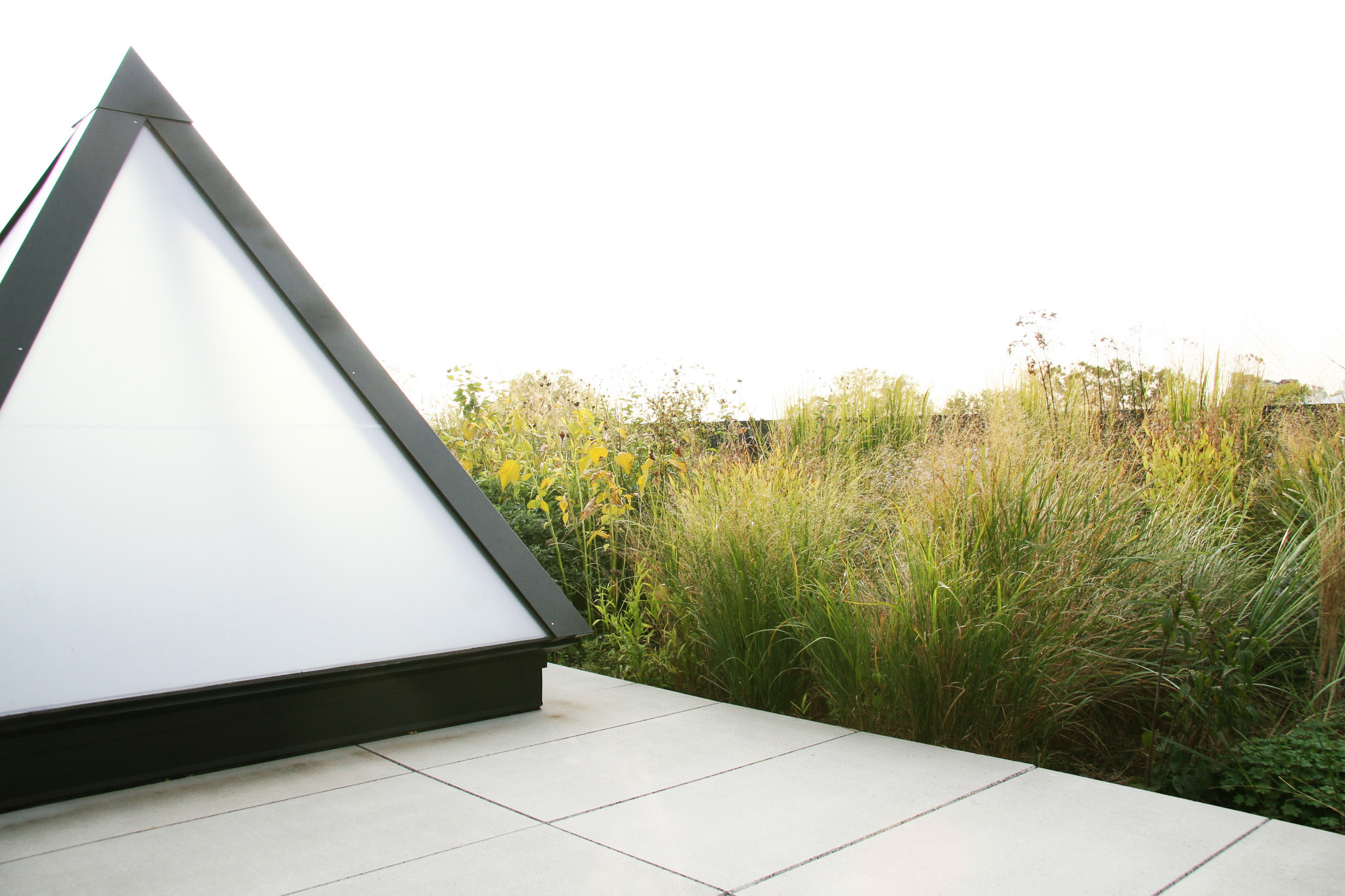 Framed by custom concrete pavers, a black steel-paneled railing, and pyramidal skylights built by Skylab, Skymeadow elegantly evolves between seasons. Its graceful movement and gradual aesthetic changes echo the beautiful cacophony of Flavorpaper’s vast product range, created in the studio just below.