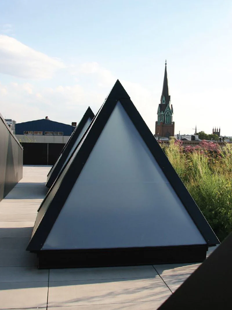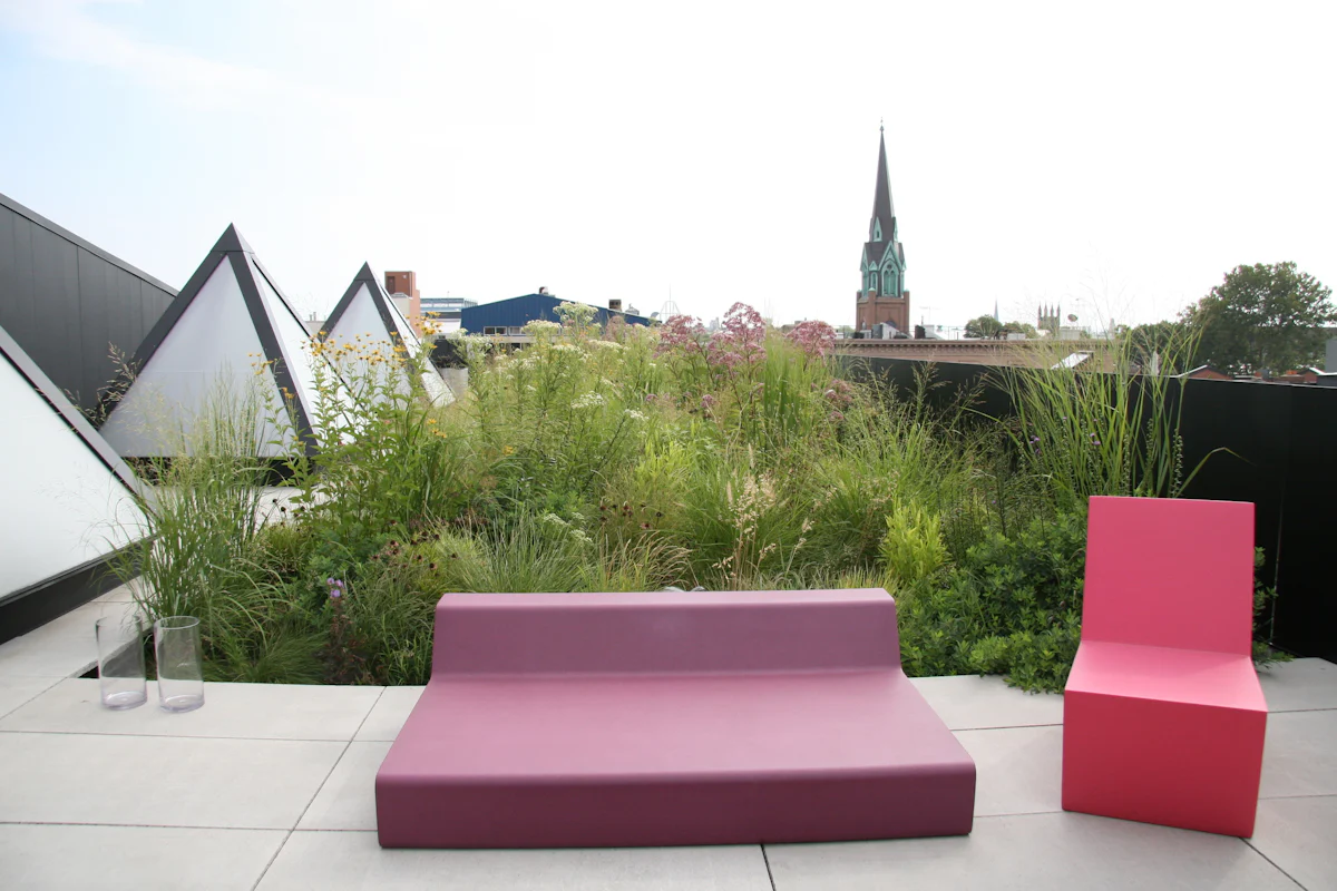 The sprawling design required a custom, roof-wide 12-inch deep planting system. We also employed an intensive green roof infrastructure that allows the meadow to absorb significant stormwater, playing an important role as a buffer to the city’s inundated stormwater management systems.